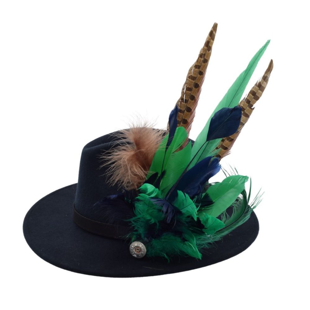 Our Chaya Navy Fedora Hat with Feathers comes in a traditional countryside Navy colour with contrasting feathers. Each Grace and Dotty high quality Fedora Hat is made in 100% Wool. The Fedora Hats have crushable qualities and it will regain its shape quickly if squashed. Our Fedora Hats have a Teflon coating. A Teflon Coating will make them weather resistant but not totally waterproof. The Fedora Hat brim measures 7cm and is detailed with a leather hat belt and a unique feather.