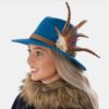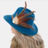 Our Eden Teal Fedora Hat with Feathers comes in a beautiful teal colour with contrasting feathers. Our hats are made in 100% Wool which has crushable qualities for it will regain its shape quickly if squashed. Our Fedora Hats have a Teflon coating. A Teflon Coating will make them weather resistant but not totally waterproof. The hat brim measures 7cm and is detailed with a leather hat belt and a unique feather.