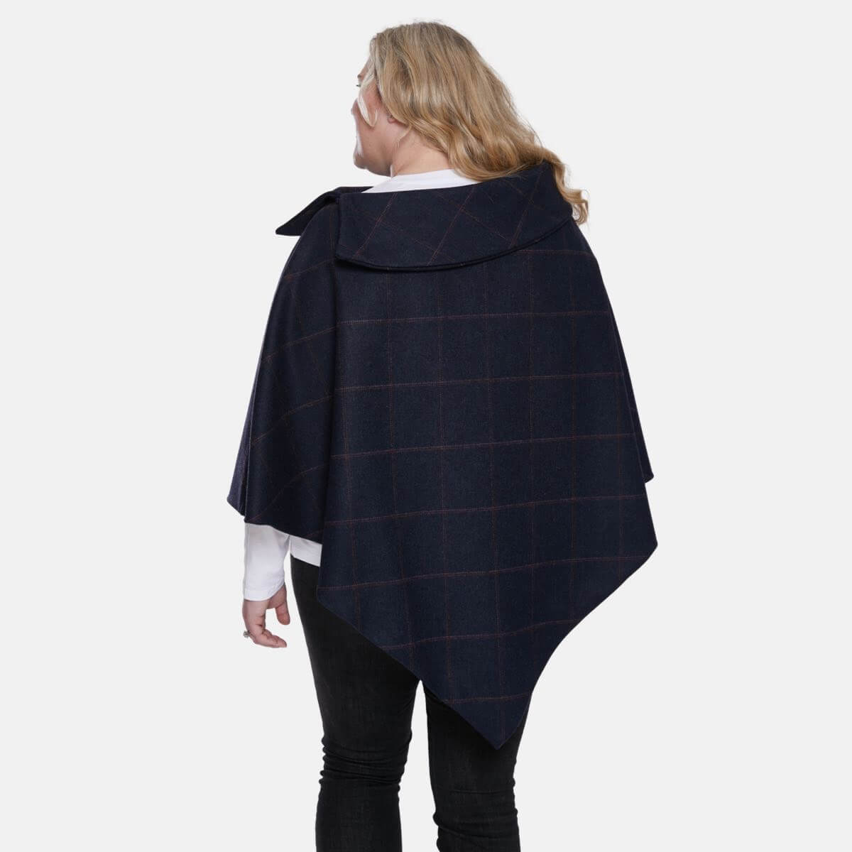 The Eleanor Curvy Cape Tweed and Tweed Collar Cape is new style of Cape produced for 2021. This product is perfect for our customers who are blessed with Curves. Ideally suited to customers who are body sized 18/20 to 24/26. Produced in 100% Pure New English Wool, the Cape is in a navy blue colour with a pink and red check tweed. This exciting style has been designed around a similar shape to our Regular Tweed Collar Cape version with a number of amendments. Just perfect for the cold Autumn and Winter evenings when going out or just simply during the day. The Curvy Tweed and Tweed Collar Cape is perfect for any occasion.