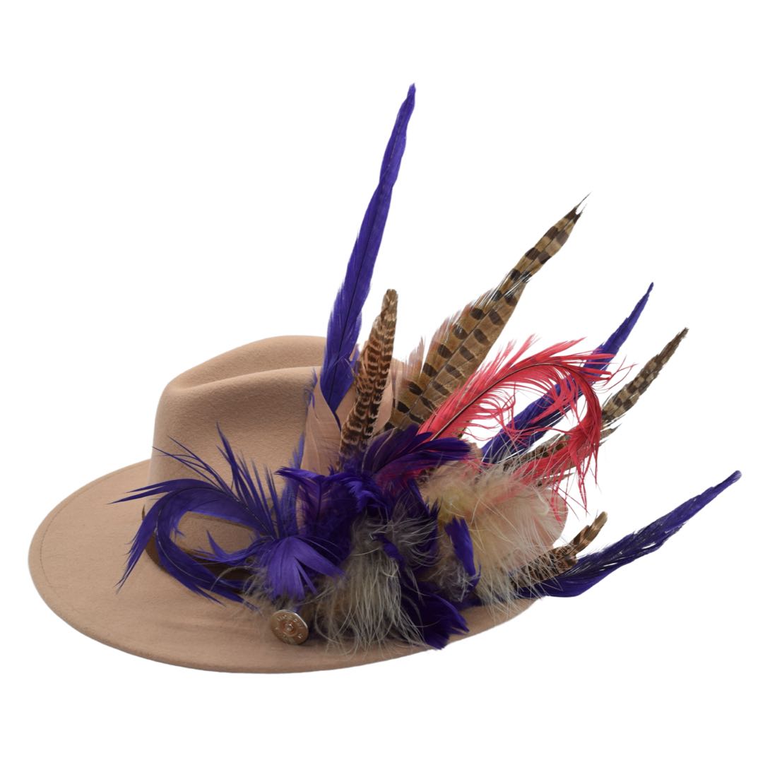Beige Fedora Hat with Feathers