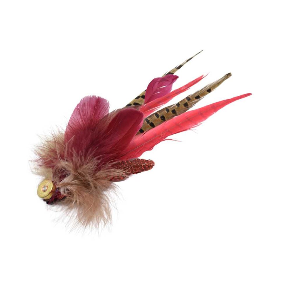 This Feather Brooch comes in a premium array of fine feathers. Using a beautiful combination of red, brown and wine feathers with our signature Feather.