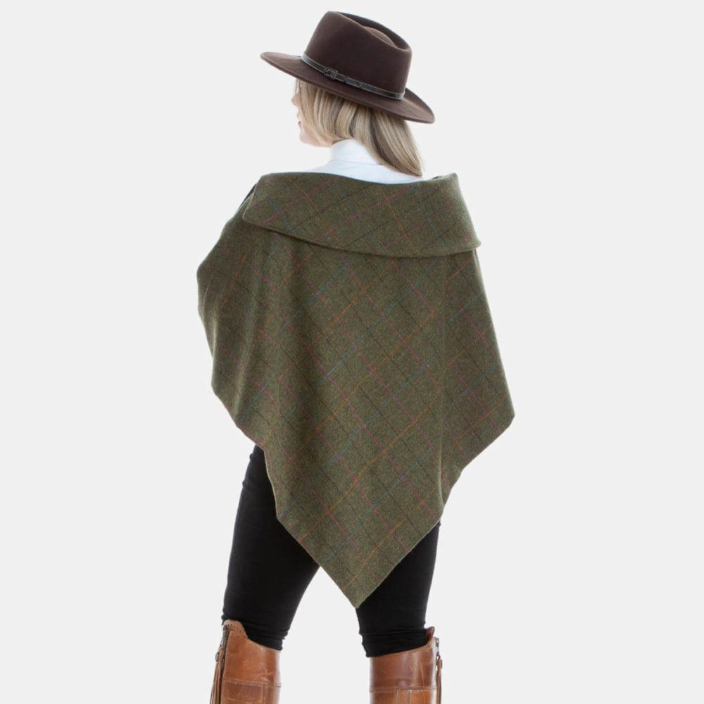 The Georgina Tweed Collar Short Capes were launched in spring 2019, and were a new addition to our collection. The Capes have been designed, developed and made in the beautiful Vales of Belvoir, England. Produced in our Georgina Tweed, this beautiful garment comes in a green base with a blue, pink, yellow and black check colour. All of our products are hand finished by our team of seamstresses with love and care.