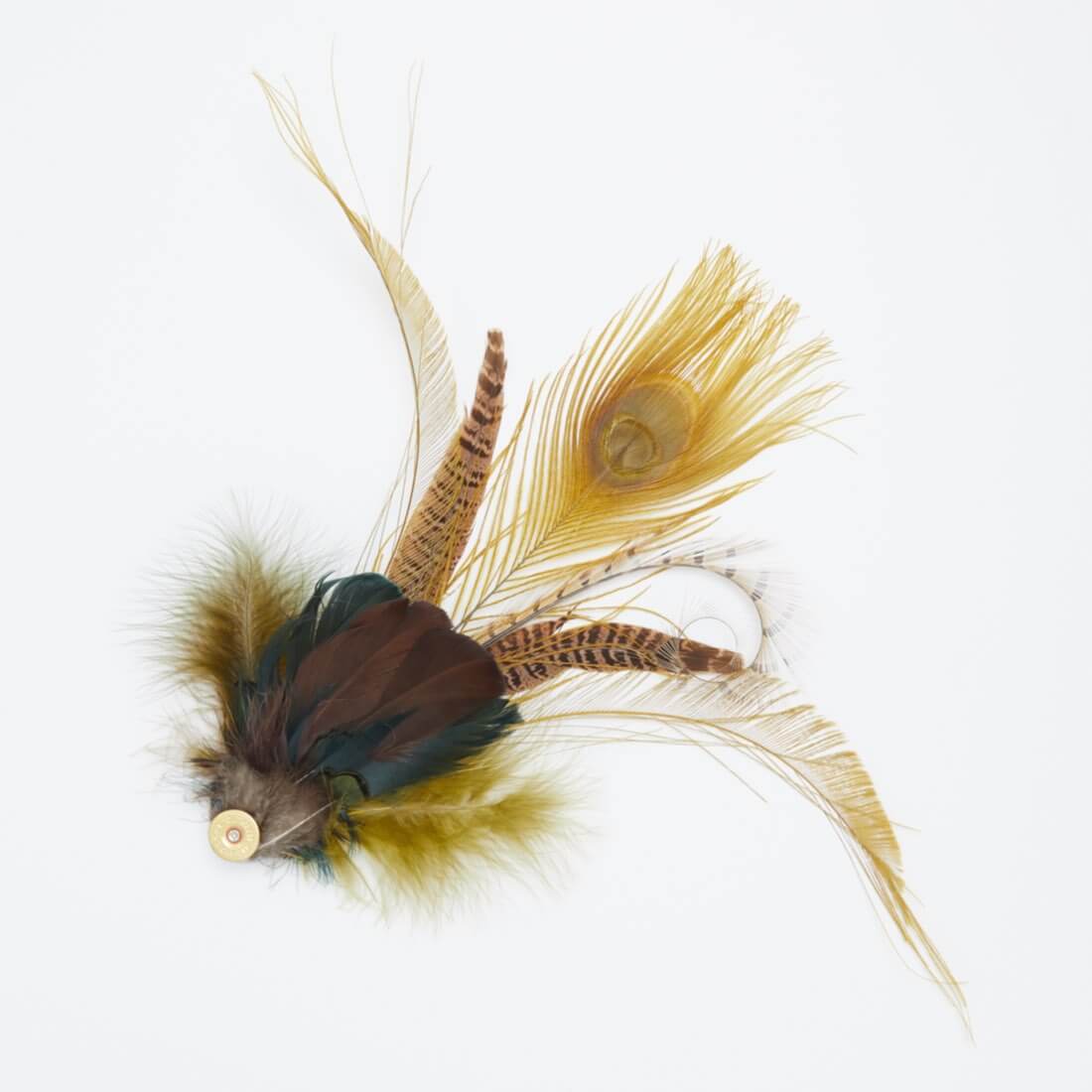 The feathers that we used are all bi-product feathers. Our feathers are natural loss feathers, which are are obtained from an ethical source. Our shotgun cartridges are new and unused, and the pins attached to the back of the brooch are made in stainless steel.