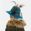 Each hat comes with a unique feather decoration. Our images represent the general look of our feathers. However, each feather decoration is individually handmade, but will be similar in design to our photography. The Hattie Teal Fedora Hat comes with feathers featuring the colours turquoise, green, brown and blue.