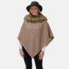 The Leah Regular Length Tweed and Faux-Fur Collar Cape brings a new tweed design for Autumn Winter 2022. Produced in 100% Pure New English Wool, the Cape comes in a dark Seafoam tweed with an Aubergine, Light Purple and Olive on trend dogstooth check. This classic style has been designed around the same base pattern as our Tweed Collar Cape version. Just perfect for the cold Autumn and Winter evenings when going out or just simply during the day. The Regular Tweed and Faux-Fur Collar Cape is perfect for any occasion. The Faux-Fur comes in a contrast natural colour.